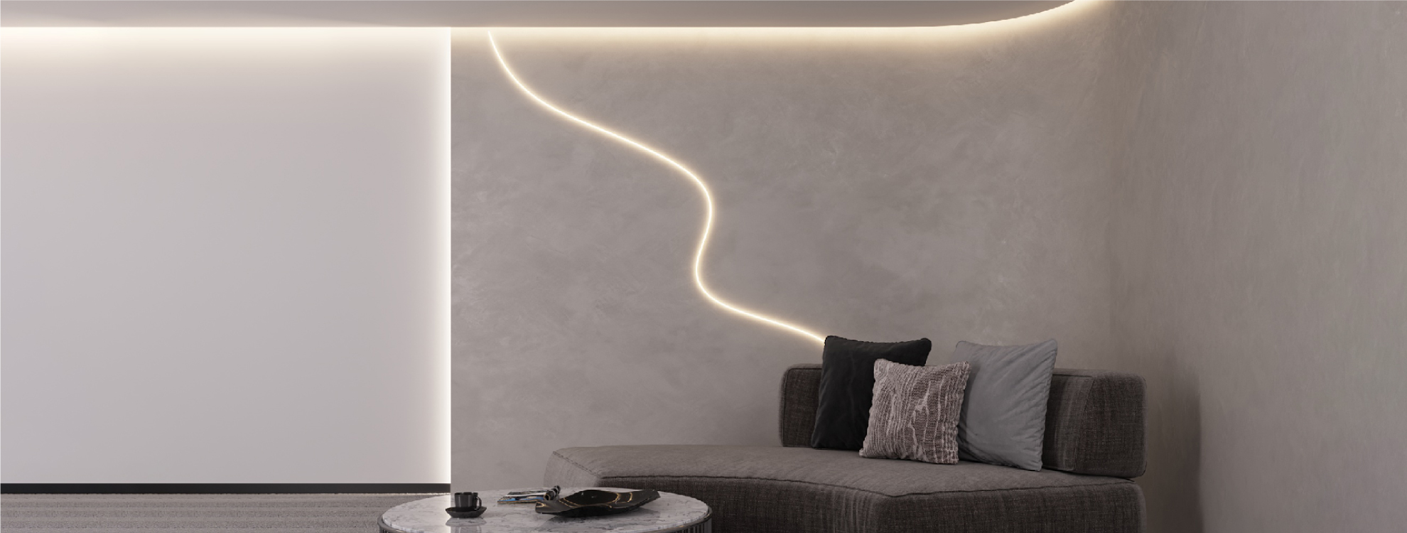Гибкий неон AURORA — отличное решение для оформления кафе, баров, ванных и детских комнат, а также создания светящихся букв, символов и рекламных вывесок. За счет прямоугольного сечения 12×6 мм гибкий неон легко встраивается в профиль и небольшие углубления в мебели. В серии представлены модели с безопасным напряжением 24 В.