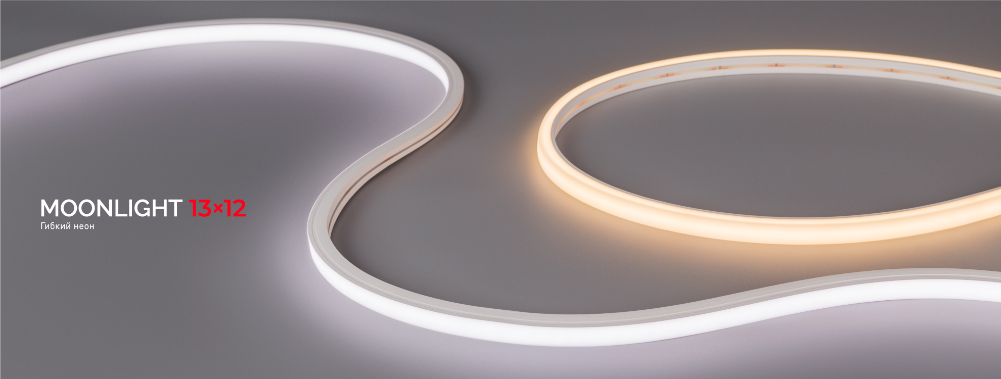 Гибкий неон MOONLIGHT с сечением 13×12 мм обладает высокой степенью пылевлагозащиты (IP67) и предназначен для создания уличной рекламы, декоративного и дополнительного освещения мостов и фасадов зданий.
