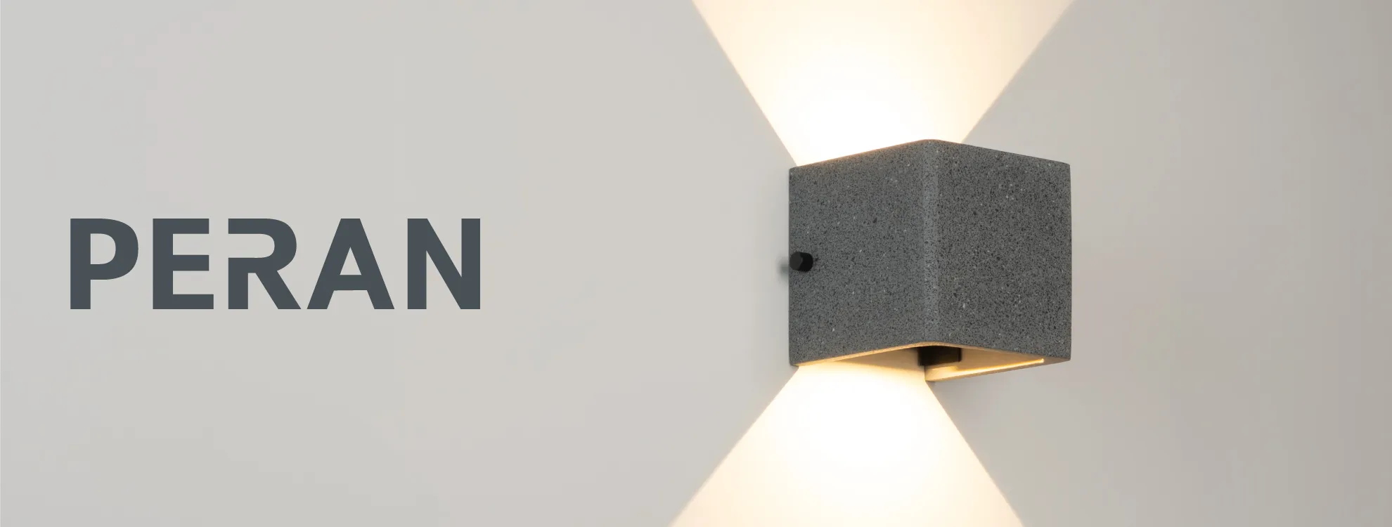 Настенный светильник создает лучи света, направленные вверх и вниз, с теплым цветом свечения (3000 K) и высокой цветопередачей (СRI>90), подчеркивая рельеф поверхности архитектурных сооружений. Кубический корпус выполнен из бетона и гармонично смотрится на фасадах зданий. Угол каждого из лучей регулируется, чтобы формировать выразительные световые акценты на поверхностях стен. Высокая степень защиты IP65 предотвращает попадание влаги и пыли внутрь светильника, что позволяет использовать его под открытым небом.