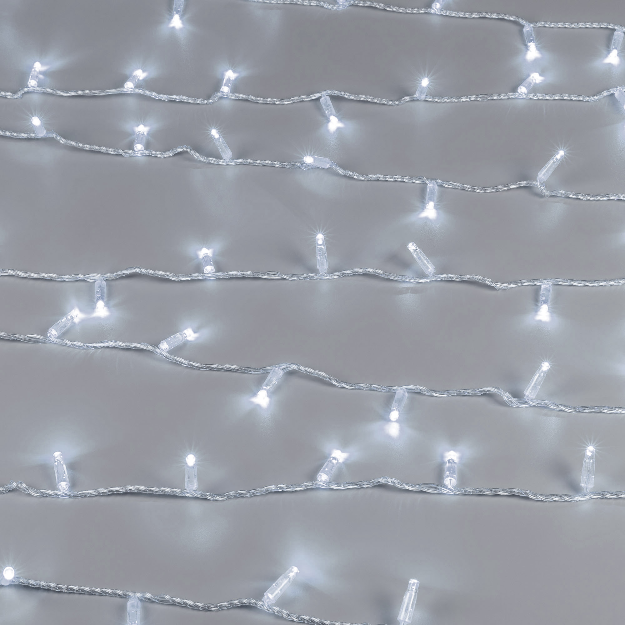 Универсальная светодиодная гирлянда "НИТЬ" серии Classic, предназначенная для декорирования и создания праздничного настроения как внутри помещений, так и снаружи (степень пылевлагозащиты IP65 позволяет размещать гирлянду на улице под навесом). Имея длину 10000 мм, она может использоваться для оформления средних и больших площадей. Универсальные соединительные разъемы позволяют наращивать длину до 50 м без использования дополнительных аксессуаров. Прозрачная вогнутая линза и эффект мерцания редких точек обеспечивают яркое и динамичное освещение, выделяя украшаемые объекты. Холодный белый свет помогает создать необходимую атмосферу для декоративного объекта. Провод прозрачный изготовлен из ПВХ. Аксессуар для подключения гирлянды к сети приобретается отдельно.