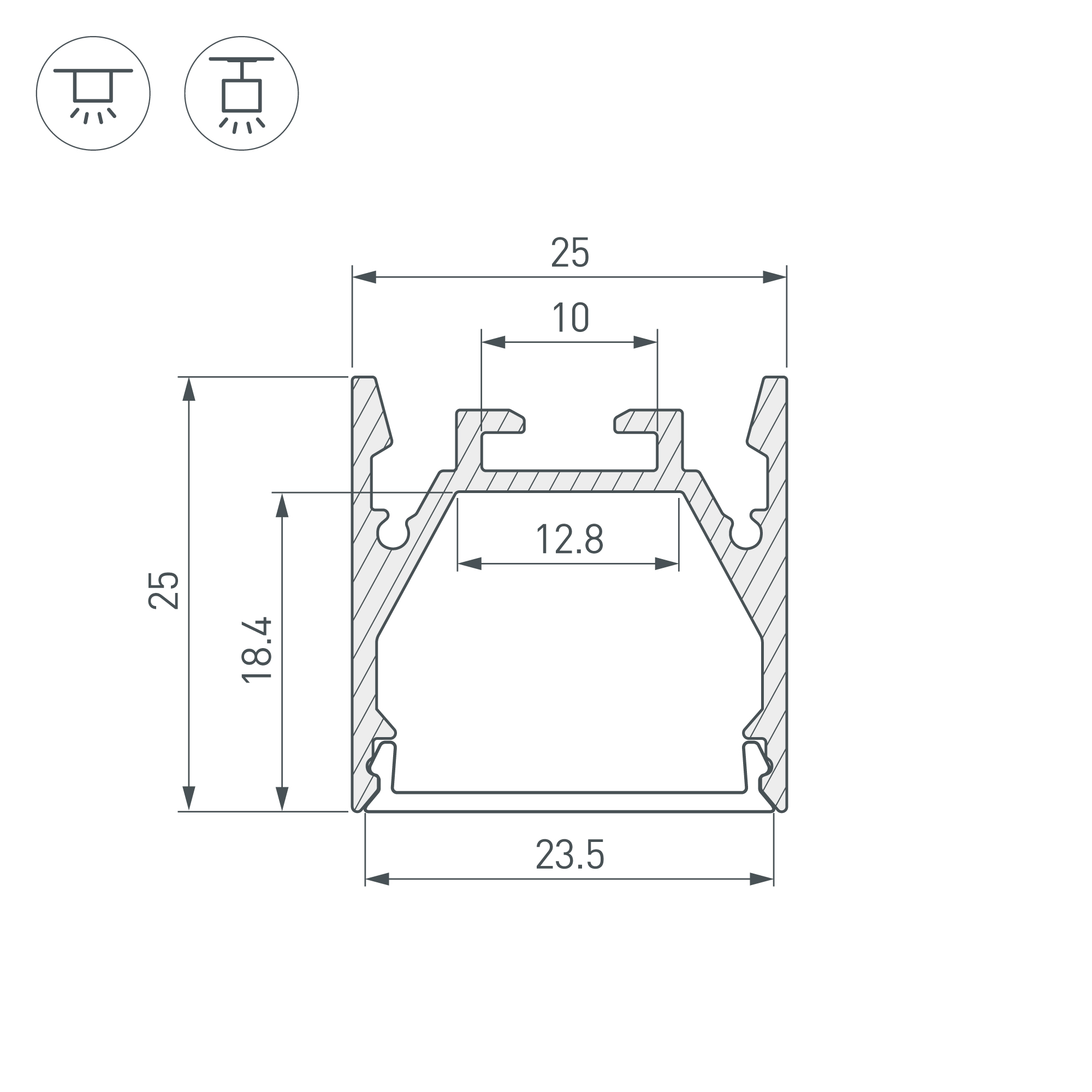 Алюминиевый анодированный профиль для светодиодных лент и линеек. Габаритные размеры (L×W×H): 2000x25x25 мм. Ширина площадки для ленты 12,8 мм. Экраны, заглушки и другие аксессуары приобретаются отдельно. Цена за 1 метр.