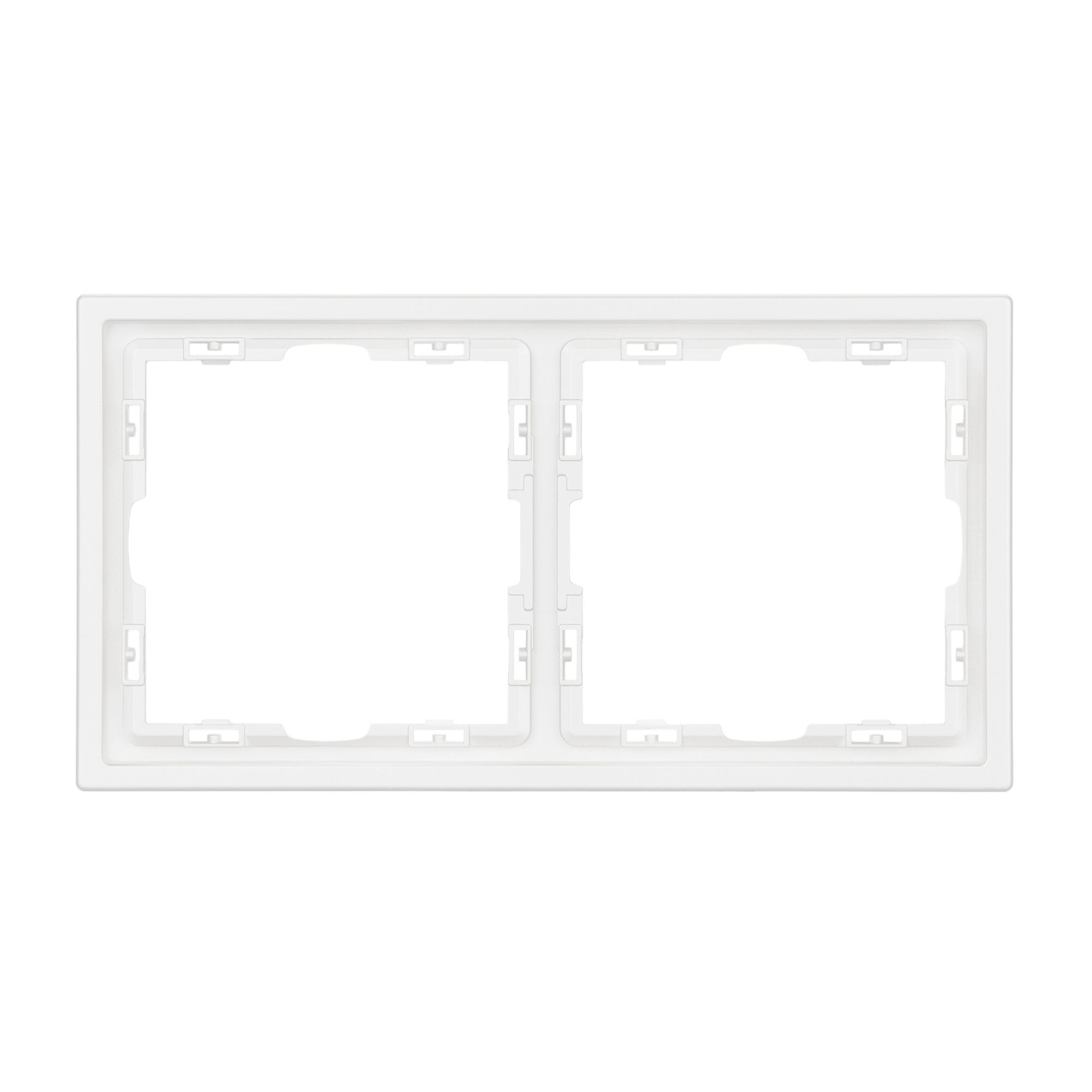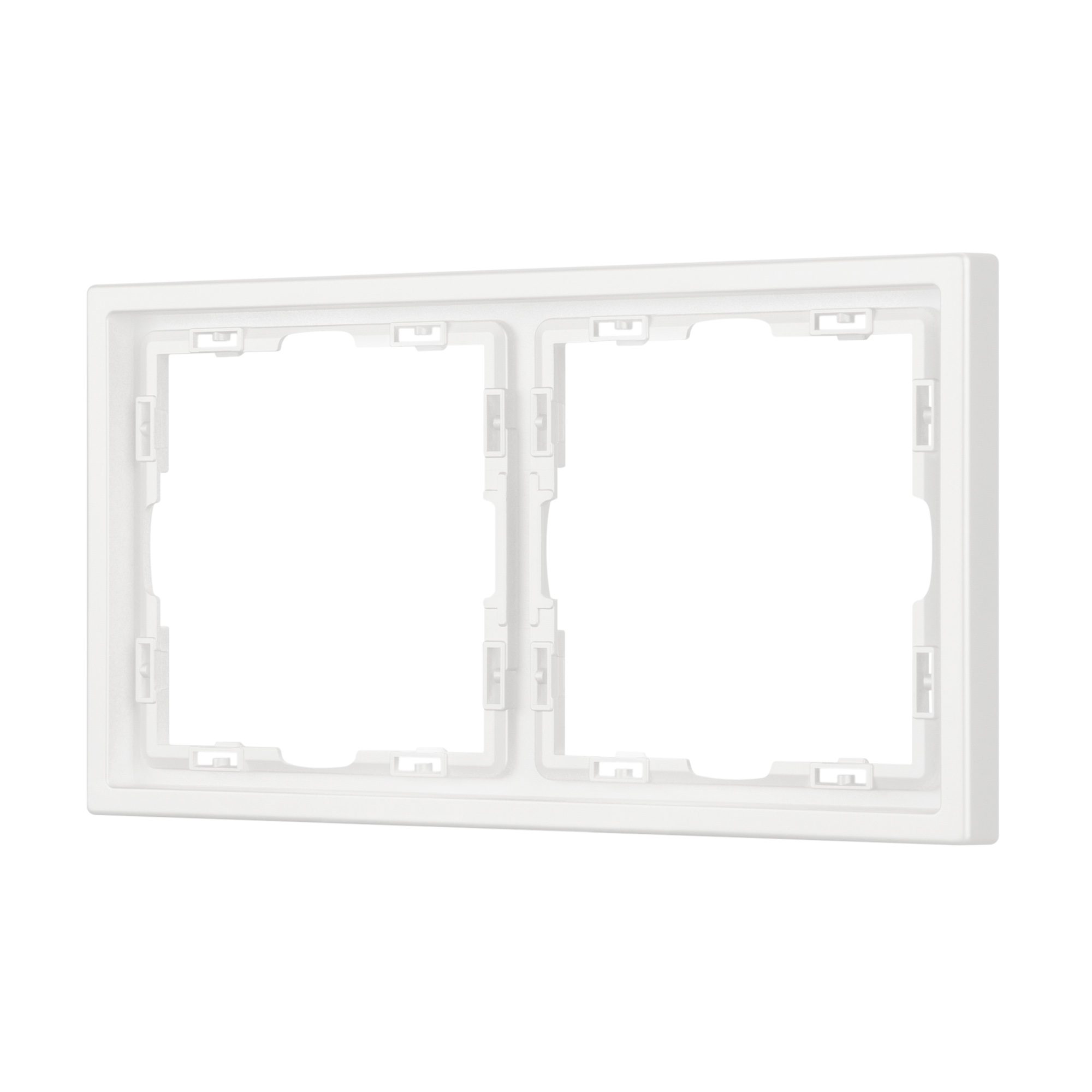 Рамка пластиковая на 2 поста, под встраиваемый механизм. Цвет - белый, с Soft-Touch покрытием. Среднего уровня герметичности IP20. Ориентация монтажа горизонтальная. Габаритные размеры: длина 152 мм, ширина 81 мм, высота 8,55 мм. Гарантийный срок 12 мес.
