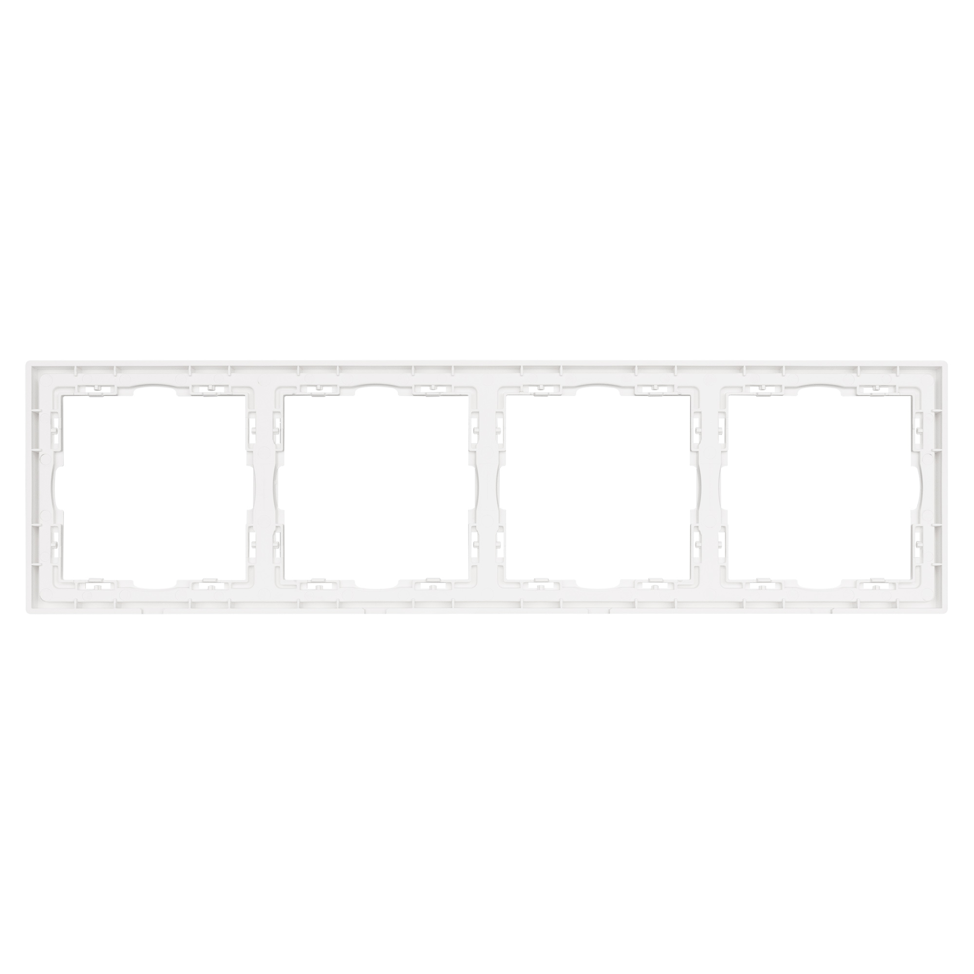 Рамка пластиковая на 4 поста, под встраиваемый механизм. Цвет - белый, с Soft-Touch покрытием. Среднего уровня герметичности IP20. Ориентация монтажа горизонтальная. Габаритные размеры: длина 294 мм, ширина 81 мм, высота 8,55 мм. Гарантийный срок 12 мес.