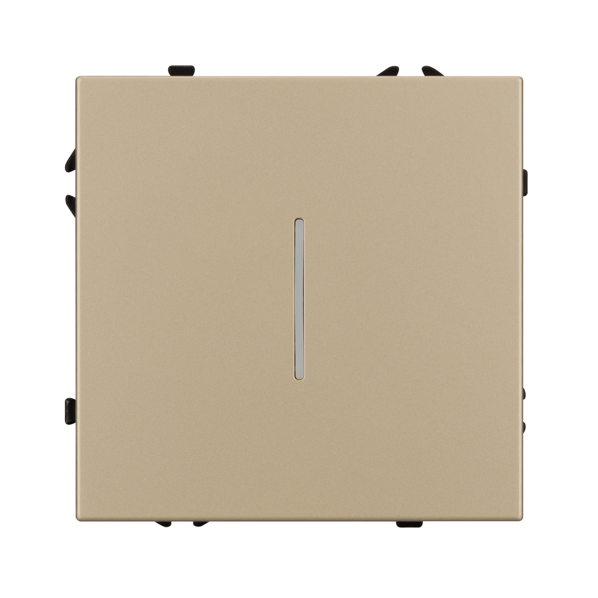 Механизм выключателя света клавишный на 1 пост 1 клавиша (проходной). Цвет - золотой, с Soft-Touch покрытием. Клавиша имеют активную LED подсветку - cинего свечения. Без фронтальной рамки. Уровень пылевлагозащиты IP20. Выключатель устанавливается в стандартный круглый подрозетник круглого сечения диаметром 60мм. Габаритные размеры: длина 71 мм, ширина 71 мм, высота 52 мм. Гарантийный срок 10 лет.