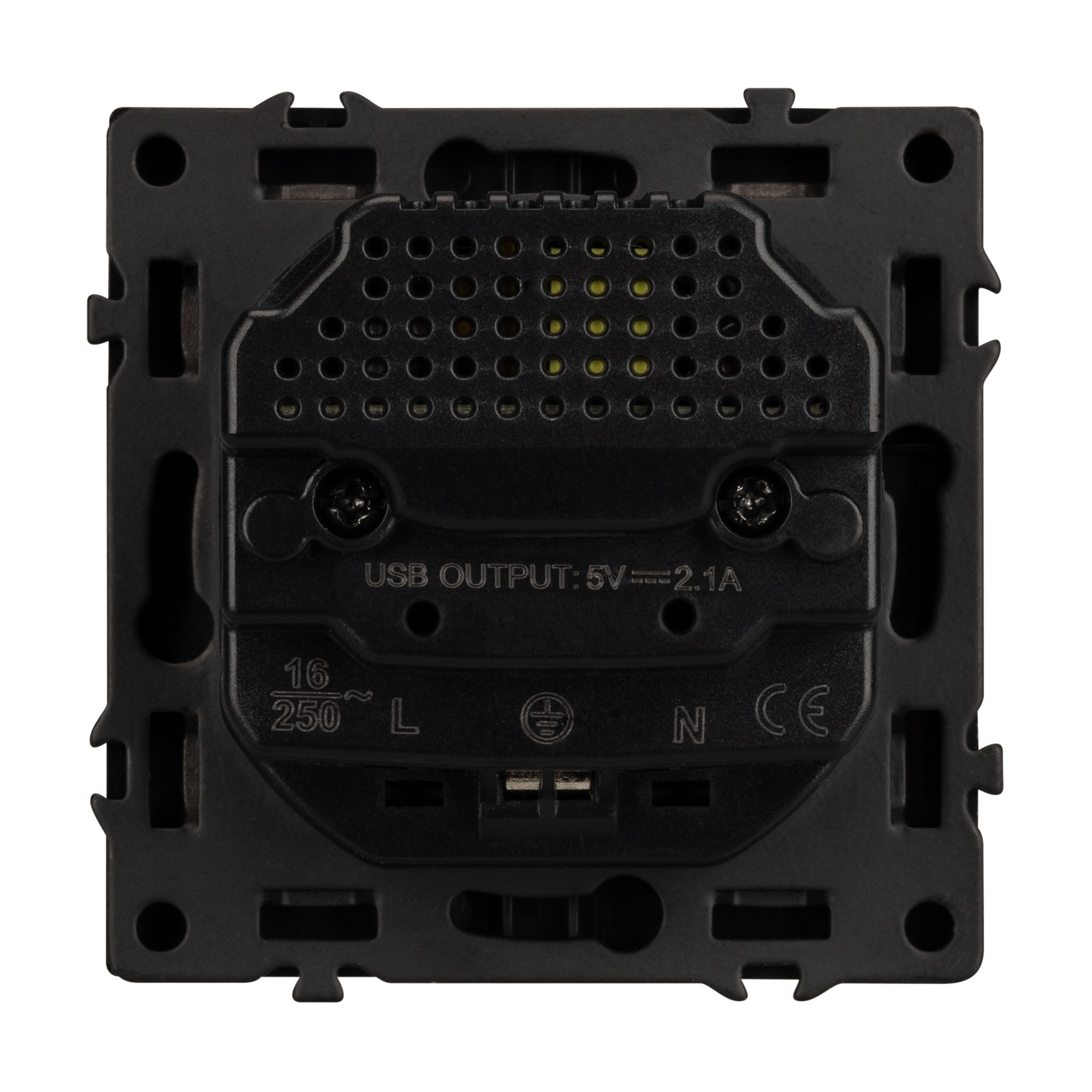 Механизм розетки с USB зарядкой, совместимый с рамками серии NOBE, создает утонченный минималистичный вид. Наличие двух USB Type A портов позволяет существенно сократить количество используемых розеточных постов под евровилку, сохраняя единую стилистику интерьера всего современного дизайн-проекта. Видимая часть механизма выполнена из высококачественного пластика черного цвета и имеет Soft-Touch покрытие, что придает изделию приятные тактильные ощущения и стильный внешний вид.