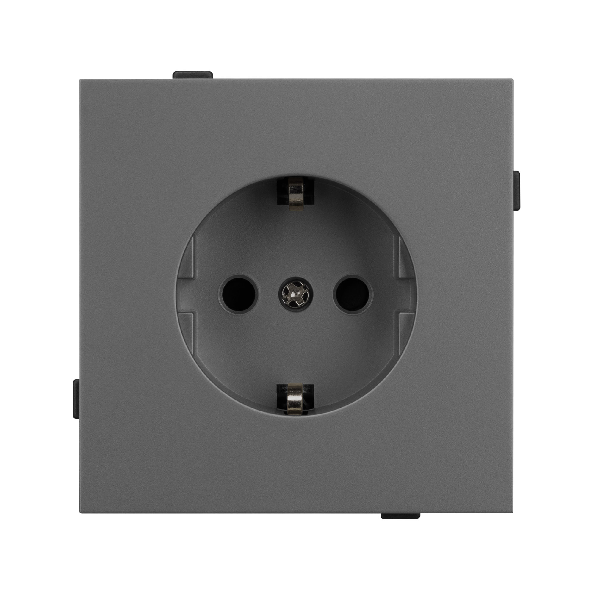 Механизм розетки с заземлением на 1 пост. Цвет - серый, с Soft-Touch покрытием. Без фронтальной рамки. Уровень пылевлагозащиты IP20. Розетка устанавливается в стандартный подрозетник круглого сечения диаметром 60мм.