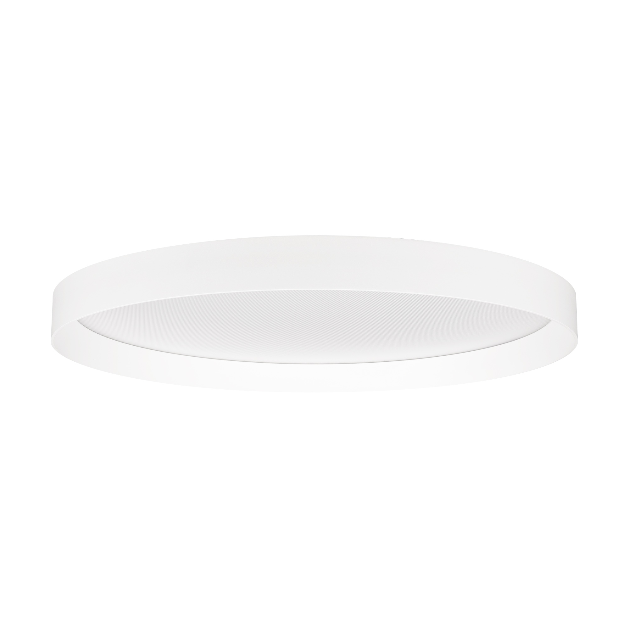 Светодиодный накладной светильник с изменяемой цветовой температурой. Мощность 40 Вт, св. поток 3018-3305 лм, 80-85 лм/Вт, теплый 2700 K, теплый 3300 K, дневной 4000K (переключается), CRI>92, угол 80°, напряжение питания 230 В. Белый круглый корпус из алюминия, матовый призматический экран PC, степень защиты IP20. Размер: Ø 450х70 мм. Размер световой части: Ø 450х39 мм, размер основания: Ø 196х31мм. Монтаж накладной. Драйвер 9-38 В, 1050 мА, пульсация <0,3%. Диммирование TRIAC.