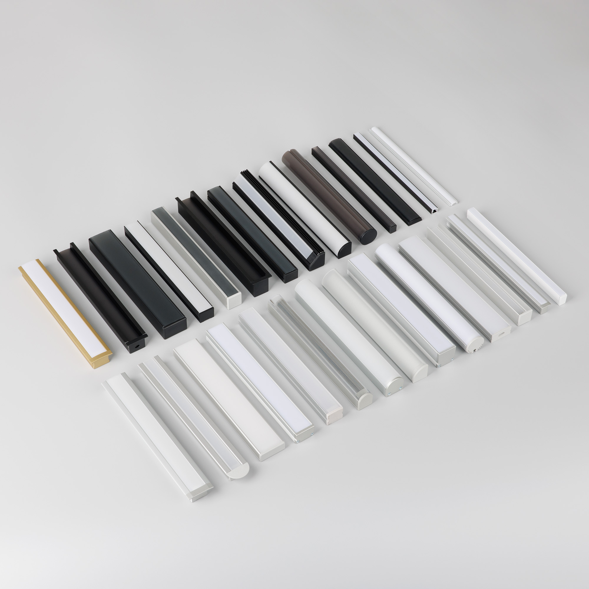 Набор образцов профилей для декоративной, контурной подсветки ARLIGHT с экранами и заглушками. Длина отрезков 150 мм.