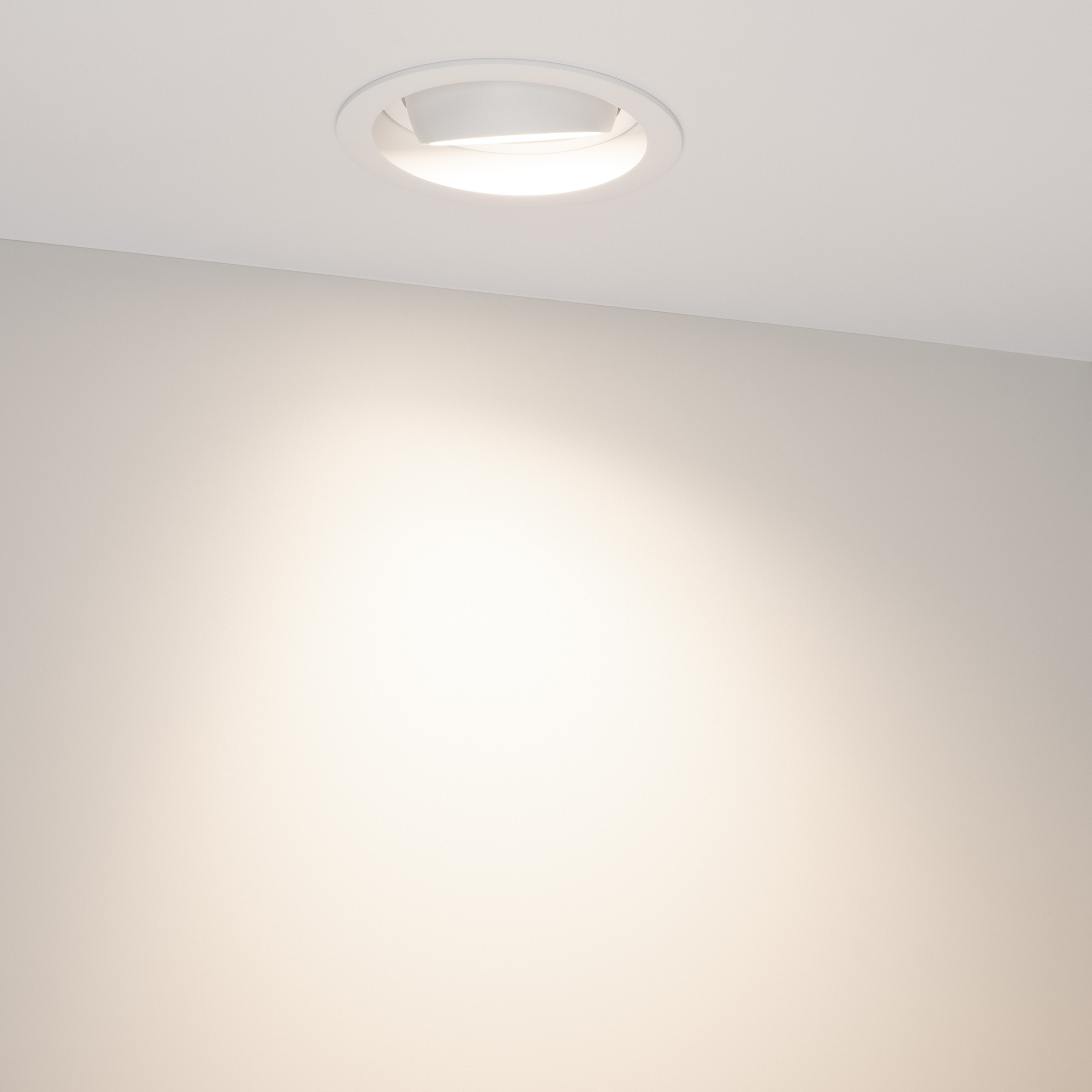 Встраиваемый карданный поворотный светильник с высоким индексом цветопередачи CRI>92 предназначен для создания качественного освещения. За основу поворотного механизма светильника взят принцип кардана – подвижное соединение двух колец, вложенных одно в другое. Световой модуль вращается вокруг своей оси на 360 градусов и отклоняется от горизонта на 30 градусов, что позволяет с лёгкостью регулировать направление пучка света и его концентрацию на определенной зоне. Особая конфигурация корпуса из алюминия оригинально смотрится в интерьере и позволяет эффективно отводить тепло. Светильник с углом рассеивания 50 градусов отлично подходит как для локальной акцентной подсветки витрин, прилавков магазинов, бутиков и стендов выставочных залов, так и для общего освещения. Легко устанавливается с помощью пружин в монтажное отверстие потолка. В комплекте поставляется драйвер, что позволяет безопасно и быстро подключать светильник напрямую к сети переменного тока 230 В.
