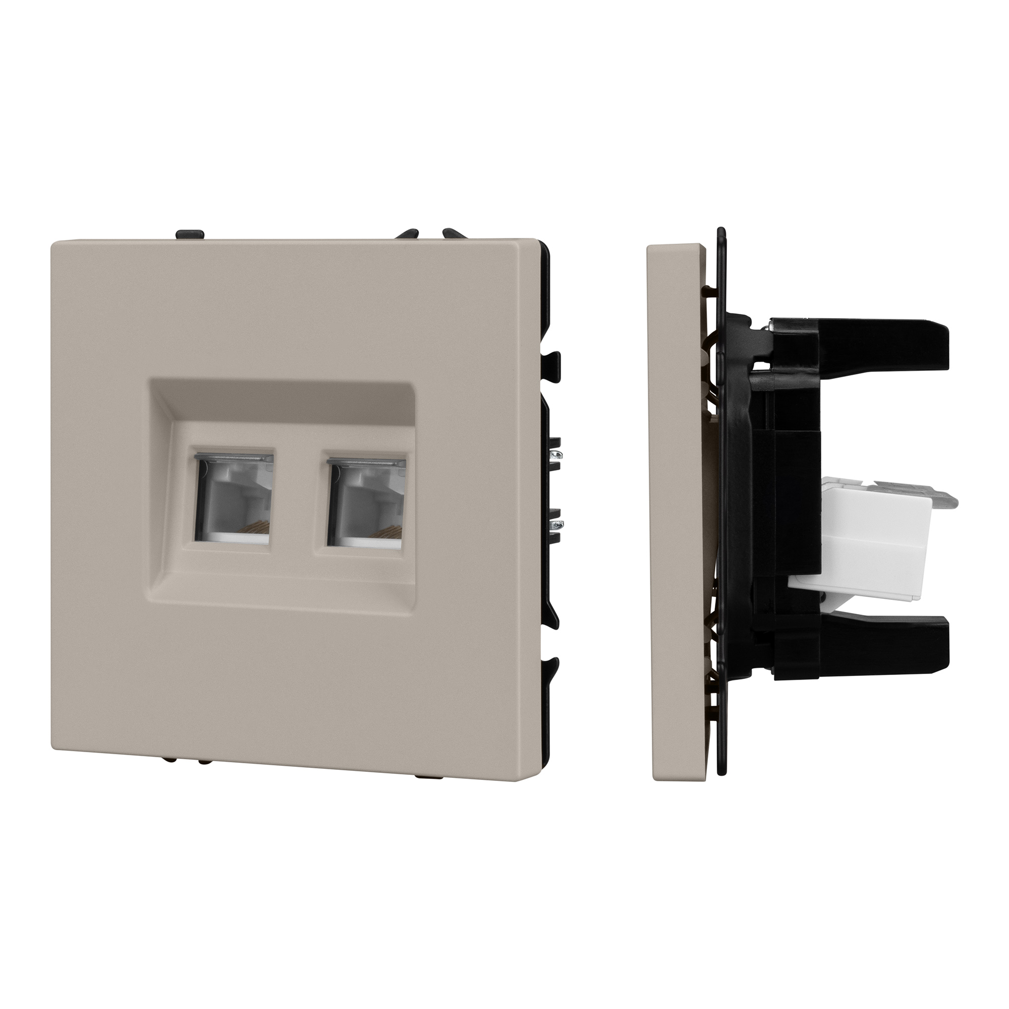 Механизм компьютерной розетки совместим с рамками серии NOBE, создает утонченный минималистичный вид. Скрытый тип монтажа позволяет гармонично встроить в интерьер любого современного дизайн-проекта. Видимая часть механизма выполнена из высококачественного пластика цвета кашемир и имеет Soft-Touch покрытие, что придает изделию приятные тактильные ощущения и стильный внешний вид.