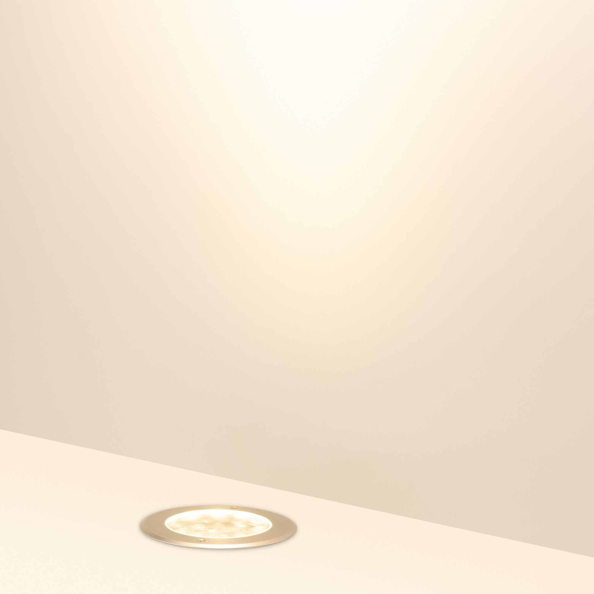 Встраиваемый светодиодный светильник LTD-DAFNA мощностью 36 Вт, теплого цвета свечения (3000К), со световым потоком 2824 лм предназначен для ландшафтного освещения парковых и садовых дорожек, придомовых территорий, а также декоративной подсветки фасада. Угол излучения 45° позволяет создать акцент на подсвечиваемом объекте. Ударопрочный круглый корпус из нержавеющей стали и алюминия Ø210x125 мм и экран из закаленного стекла толщиной надежно защищают оптический блок со светодиодом от внешних воздействий. Степень пылевлагозащиты корпуса на уровне IP67 рассчитана на длительное использование на открытом воздухе, а так же обеспечивает надежную работу в неблагоприятных условиях. Установка в отверстие ДxВ Ø195x120 мм. Светильник поставляется в сборе с драйвером и питающим кабелем, что позволяет легко и быстро подключить его к сети 230 В.