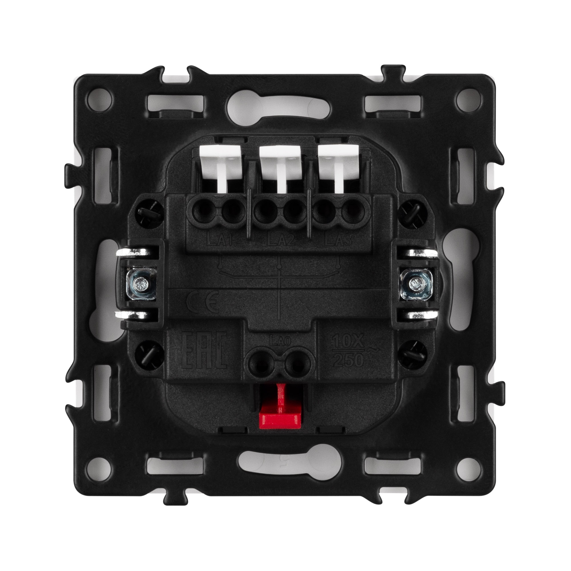 Строгие геометрические линии гармонично сочетаются с функциональностью продуманных механизмов, создавая идеальное решение для дизайн-проектов, где важны как эстетика, так и практичность. Механизм выключателя света совместим с рамками серии NOBE, создает утонченный минималистичный вид. Скрытый тип монтажа позволяет гармонично встроить в интерьер любого современного дизайн-проекта. Видимая часть механизма выполнена из высококачественного пластика цвета никель и имеет Soft-Touch покрытие, что придает изделию приятные тактильные ощущения и стильный внешний вид. Соединение посредством быстрозажимных контактов, позволяет надежно подсоединить механизм выключателя к питающим элементам, минимизируя затраченное время на монтаж. А усиленные распорные лапки двойного захвата надежно фиксируют механизм в установочном подрозетнике круглого сечения диаметром 60мм. Суппорт окрашен в черный матовый цвет под основу механизма и выполнен из металла толщиной 1,5мм, что обеспечивает безопасность и уверенность в установке. На каждой стороне суппорта размещены фиксирующие элементы, позволяющие комбинировать механизмы в системы до 5 шт как горизонтально, так и вертикально.