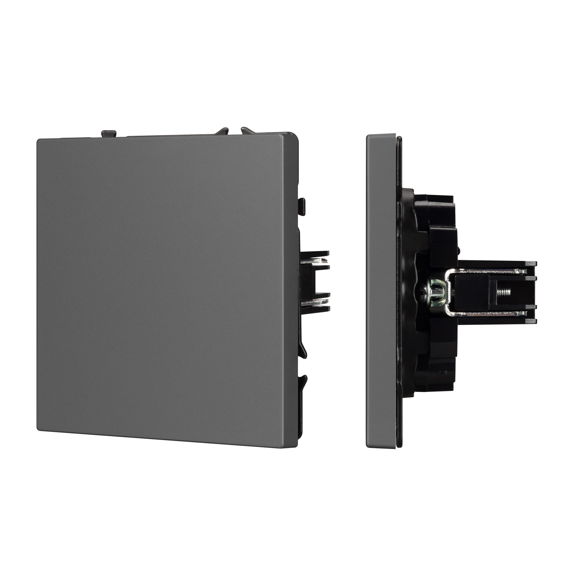Строгие геометрические линии гармонично сочетаются с функциональностью продуманных механизмов, создавая идеальное решение для дизайн-проектов, где важны как эстетика, так и практичность. Заглушка поста совместима с рамками серии NOBE, создает утонченный минималистичный вид. Скрытый тип монтажа позволяет гармонично встроить в интерьер любого современного дизайн-проекта. Видимая часть выполнена из высококачественного пластика цвета серый базальт и имеет Soft-Touch покрытие, что придает изделию приятные тактильные ощущения и стильный внешний вид. Заглушка предназначена для перекрытия поста под дальнейшее размещение механизма, не имеет питающих элементов и выполняет декоративную функцию. Усиленные распорные лапки двойного захвата надежно фиксируют устройство в установочном подрозетнике круглого сечения диаметром 60мм. Суппорт окрашен в черный матовый цвет и выполнен из металла толщиной 1,5мм, что обеспечивает безопасность и уверенность в установке. На каждой стороне суппорта размещены фиксирующие элементы, позволяющие комбинировать механизмы в системы до 5шт как горизонтально, так и вертикально.