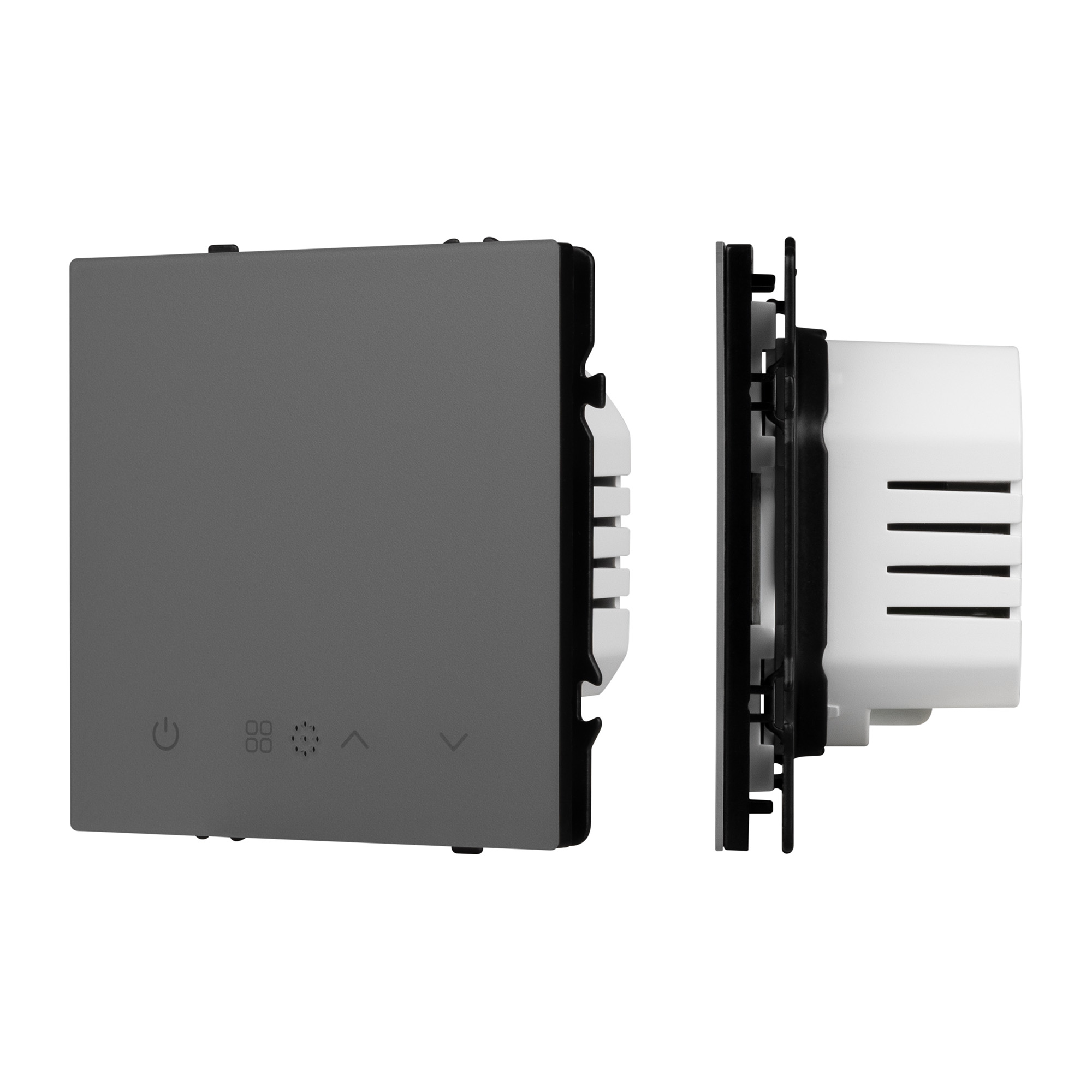 Строгие геометрические линии гармонично сочетаются с функциональностью продуманных механизмов, создавая идеальное решение для дизайн-проектов, где важны как эстетика, так и практичность. Терморегулятор совместим с рамками серии NOBE, создает утонченный минималистичный вид. Скрытый тип монтажа позволяет гармонично встроить в интерьер любого современного дизайн-проекта. Видимая часть механизма выполнена из глянцевого поликарбоната цвета серый базальт, что придает изделию приятные тактильные ощущения и стильный внешний вид. Настройка работы электрического теплого пола осуществляется за счет выбора необходимых значений не посредственно как на самом устройстве, так и при подключении по беспроводной сети Zigbee в приложениях SmartLife и Умный Дом (Яндекс). Суппорт окрашен в черный матовый цвет под основу механизма и выполнен из металла толщиной 1,5мм, что обеспечивает безопасность и уверенность в установке. На каждой стороне суппорта размещены фиксирующие элементы, позволяющие комбинировать механизмы в системы до 5шт как горизонтально, так и вертикально.