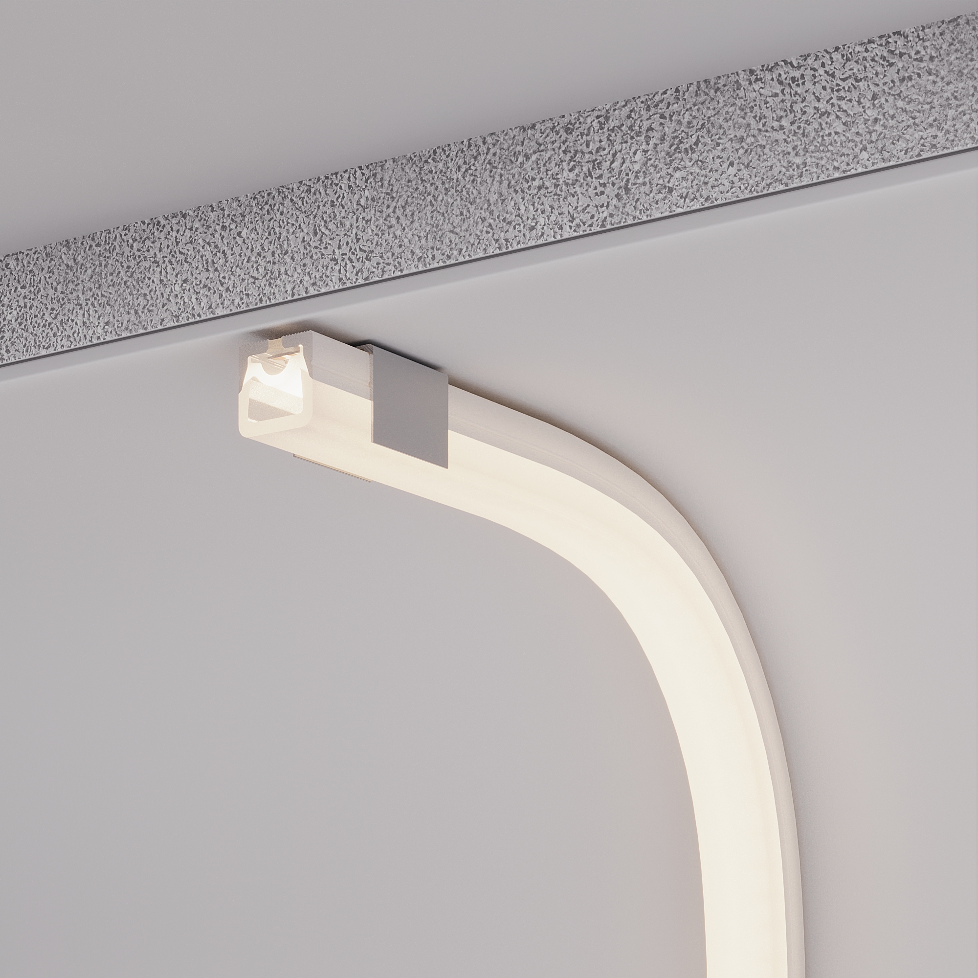 Цельнолитой силиконовый гибкий профиль белого цвета. Габаритные размеры профиля составляют 10000 мм в длину, 20 мм в ширину и 20 мм в высоту. Вертикальный изгиб TOP, минимальный радиус изгиба 60 мм. Угол излучения 140°. Для удобства установки ленты по всей длине профиля протянута нить. Площадка для установки светодиодных лент позволяет использовать ленту шириной от 10 до 12 мм, высотой до 4 мм и мощностью до 10 Вт/м. Это обеспечивает гибкость в выборе светодиодных лент и создает потрясающие световые решения. Для установки во влажных помещениях необходима герметизация при помощи двухкомпонентного эпоксидного герметика. Класс пылевлагозащиты – IP65 (при соблюдении технологии герметизации). Этот продукт представляет отличное решение для создания современных световых проектов и обеспечивает надежную и стильную основу для установки светодиодов. Для накладного монтажа на 1 метр профиля рекомендуем использовать не менее 3-х держателей. Подходит только для установки внутри помещения