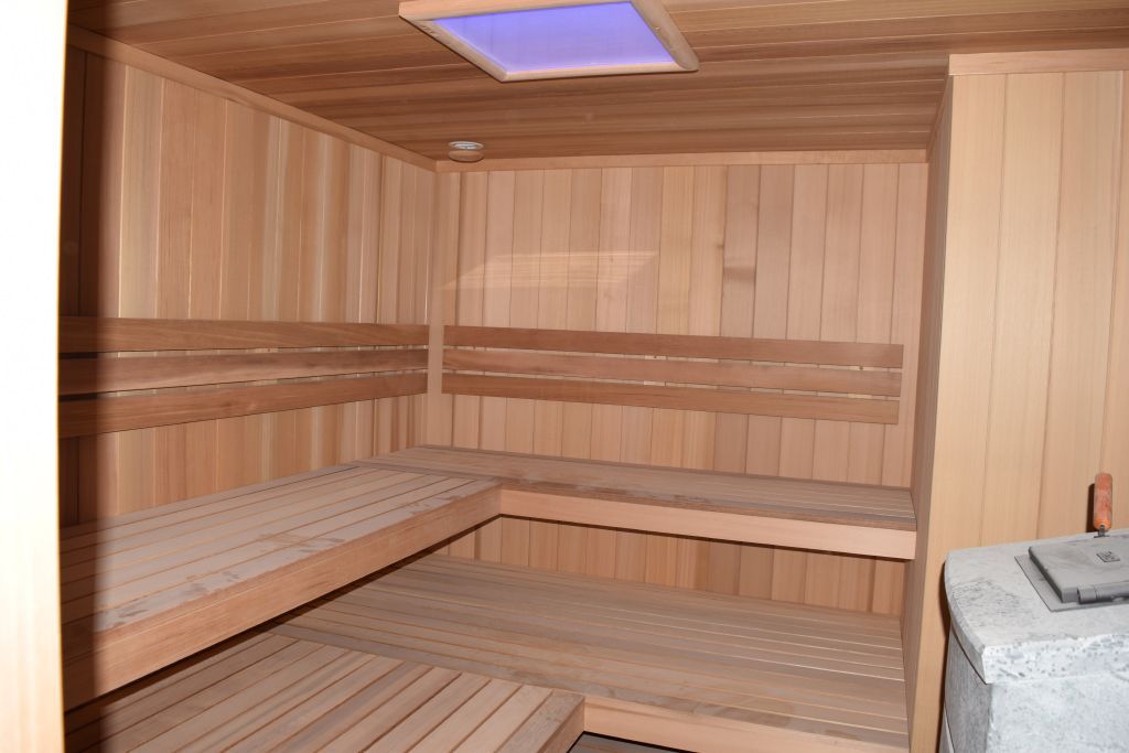 Отдельно отметим сауну. Она является зоной с высокой влажностью и температурой, поэтому к безопасности и надёжности применяемых в ней источников света предъявляются повышенные требования. Светильником в сауне служит светодиодная панель, обрамлённая деревянной рамкой. А подсветка была установлена под лавки верхнего уровня. Для этого была использована герметичная светодиодная лента arlight®t с тёплым белым свечением, соответствующим данному помещению. В предбаннике и зоне джакузи освещение выполнено на основе точечных встраиваемых светильников и "линий света". Эффект неразрывных световых линий достигается путём использования светодиодной ленты, установленной в алюминиевый профиль с матовым экраном. В душевой зоне смонтирован светящийся потолок, сделанный из матового светопропускающего оргстекла и скрытой за ним светодиодной ленты. Таким образом достигается эффект светящейся поверхности потолка.